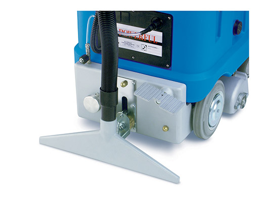 دستگاه فرش و موکت شوی Powerful یک دستگاه فرش شوی قدرتمند و دارای موتور جلوبرنده است که برای نظافت و شستشوی سطوح فرش شده در محیطهای دارای وسعت بالا طراحی شده است. پهنای شستشوی این دستگاه فرش شوی تک برسه 50 سانتیمتر بوده و دستگاه با برخورداری از قابلیت تنظیم سرعت حرکت قادر به شستشوی تا 600 مترمربع در هر ساعت می باشد. موتور جلوبرنده دیفرانسیلی این دستگاه فرش و موکت شوی امکان چرخش راحت دستگاه را فراهم نموده و قدرت مانور بالایی حتی در فضاهای باریک همانند راهروها بخشیده است. فشار برس چرخان این دستگاه فرش شوی متناسب با نوع فرش قابل تنظیم می باشد. همچنین میزان پاشش محلول را می توان با توجه به نوع عملیات شستشوی مورد نظر (شستشوی روزانه یا عمیق) تنظیم نمود.