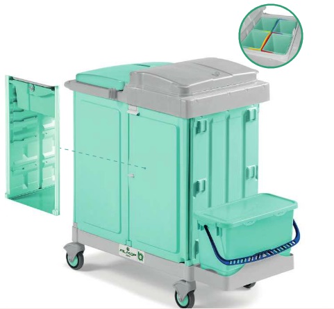 در تولید ترولی بیمارستانی Alpha AB-Plus 1803702 تمامی پارامترهای مورد نیاز و استاندارد برای یک ترولی بیمارستانی کارآمد لحاظ شده است. این ترولی از مواد کاملا قابل بازیافت تولید گردیده است و دارای چرخ های بی صدا و درپوش های نرم می باشد در نتیجه هنگام کار کردن با آن هیچ گونه صدای ناخوشایند ایجاد نمی شود. از سوی دیگر جنس پلاستیک به کار رفته در تولید این ترولی نظافتی آنتی باکتریال بوده و به راحتی تمیز می شود. بخش های بسته ترولی آنتی باکتریال Alpha AB-Plus 1803702 سطح استاندارد بالاتری از ایمنی و بهداشت فراهم می نماید.
