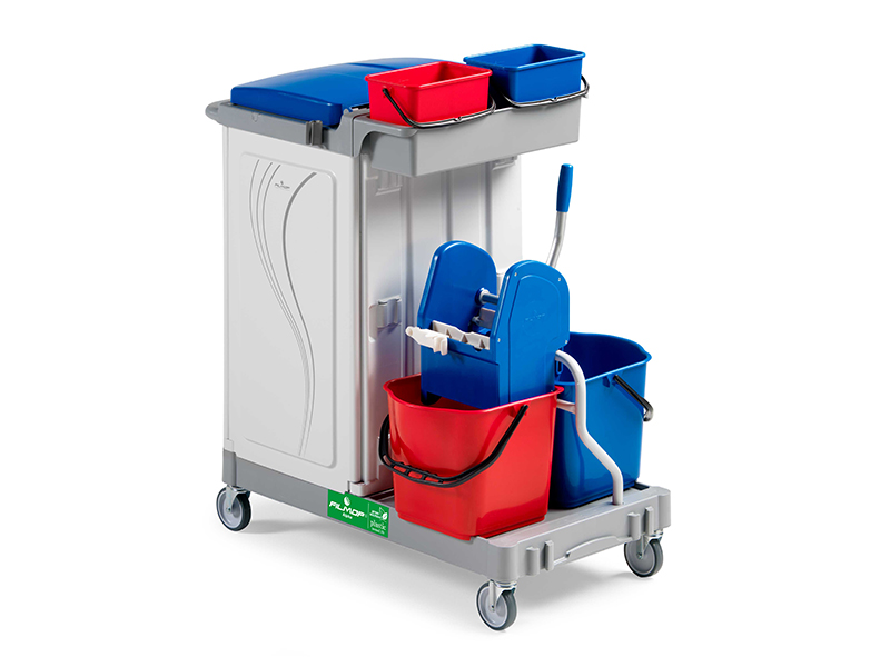 دارای دو سطل 4 لیتری با رنگ های متفاوت و در نتیجه امکان جدا کردن محلول های شیمیایی مختلف و ابزار و تجهیزات نظافت مورد استفاده به شکل موثر و کارآمد