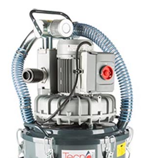 در تولید جاروبرقی صنعتی Tecnoil 200IF T از موتور توربینی سه فاز و پمپ ساید چنل با قابلیت عملکرد پیوسته استفاده شده است که توان لازم را برای مکش، جداسازی و بازیافت یا تخلیه روغن برش مخلوط با تراشههای فلزی فراهم مینماید.