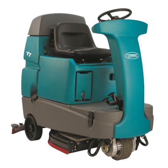 دستگاه اسکرابر خودرویی T7 یک دستگاه کفشوی سرنشین دار سخت کار با طراحی منسجم است که با دارا بودن قدرت مانور بالا در هر دو محیط بزرگ و فضاهای محدود و باریک به راحتی حرکت می کند. این دستگاه به صورت کاملاً صنعتی و سخت کار طراحی شده و گنجایش مخازن آن 110 لیتر، پهنای شستشو 810 میلی متر و سطح صدای آن 67 دسی بل می باشد. مخزن های آب تمیز و آب کثیف دستگاه دسترسی آسان دارند و از همین رو سریع و به سادگی قابل شستشو هستند و این ویژگی سبب می شود همواره شستشو در بهینه ترین حالت انجام گیرد و اثری از آلودگی و بوی نامطبوع در محیط باقی نماند. ساده سازی آموزش، کاربری و کنترل آسان از دیگر مشخصه های دستگاه است و کاربر طی یک آموزش ساده می تواند دستگاه زمین شوی صنعتی را به کار گیرد، از طرف دیگر هنگام استفاده کاربر دچار خستگی نمی گردد. اسکرابر صنعتی از طراحی ارگونومیک برخوردار بوده که به دنبال آن برس و تی آن به راحتی قابل تعویض هستند.